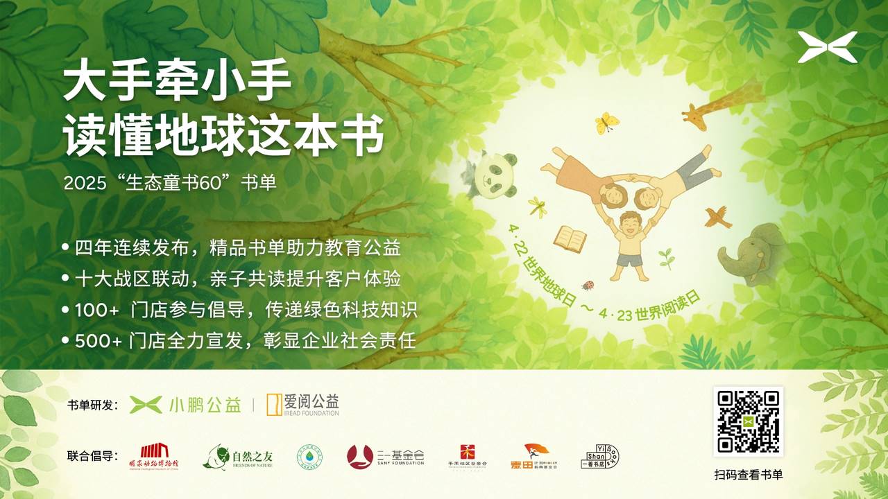 自2022年起,每年世界地球日与世界读书日,小鹏公益携手深圳市爱阅公益基金会及多家向善伙伴,连续4年发布“生态童书60”书单,累计推荐优质童书240册(套),覆盖3到12岁读者群体,涵盖科普、文学、人文三大类别,重点收录了反映气候变化、清洁能源和生物多样性、低碳生活等热点题材的童书,为家庭、学校及社会提供专业生态童书阅读指南,倡导家庭、学校和社会组织等与孩子一起在阅读中提升生态环境知识、素养和行动力,传播生态文明理念,营造绿色生活风尚。