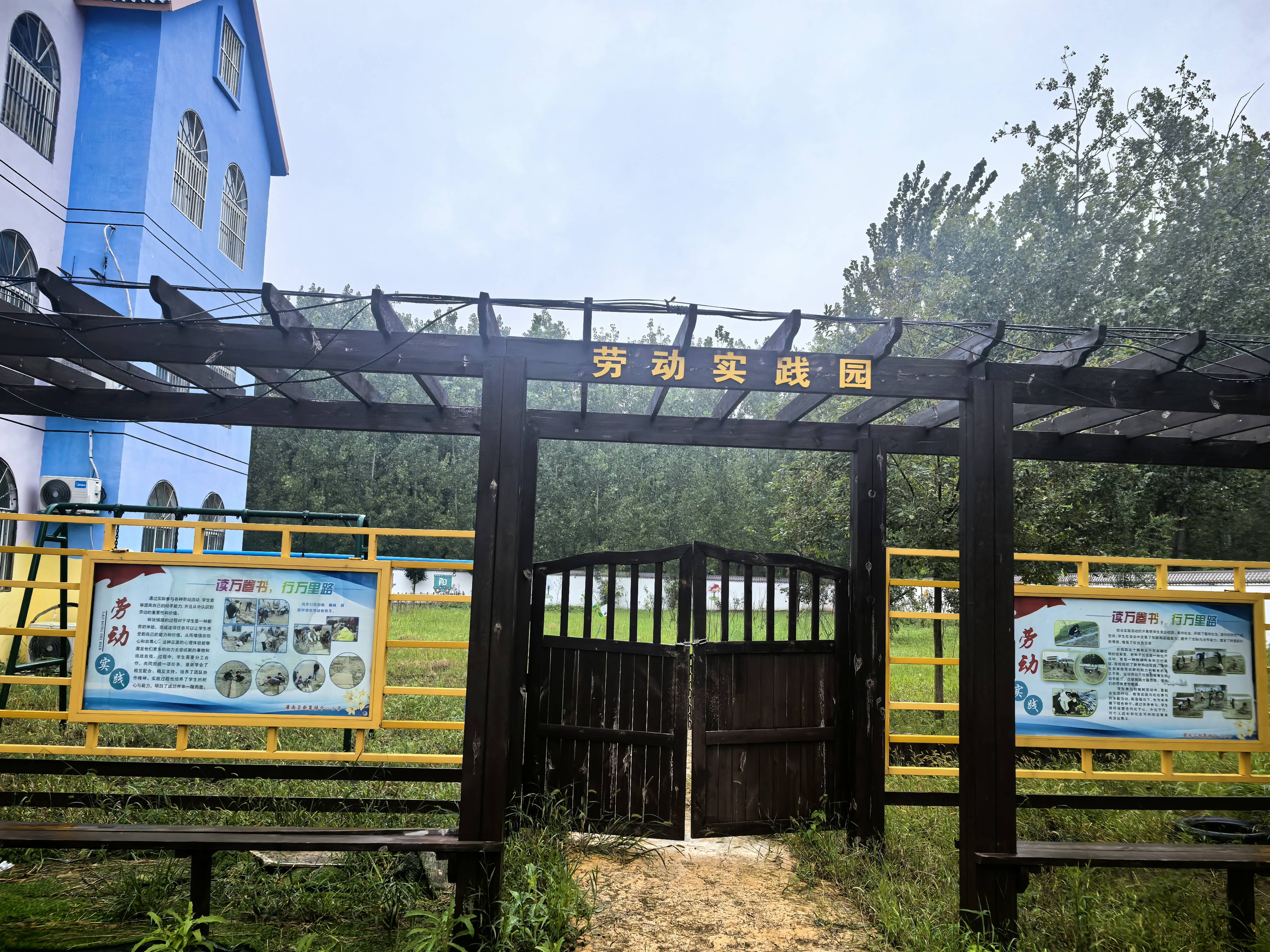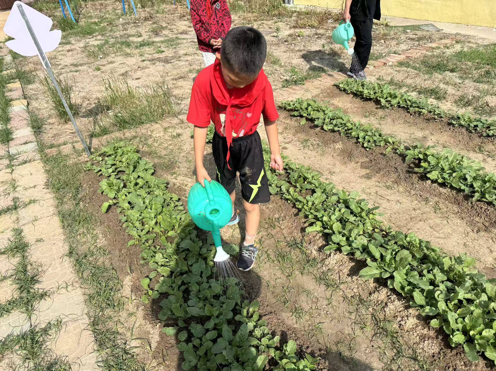 第二阶段(2023年4月起)——种植与日常运维每班每周承担一次“菜园日”,内容包括松土、播种(主要为白萝卜、青菜、香菜)、移栽果树苗(县政府免费发放的乡土树种)、拔草、施肥(食堂厨余发酵制 成)。设立“生态观察日记本”,记录植物生长与气候变化。